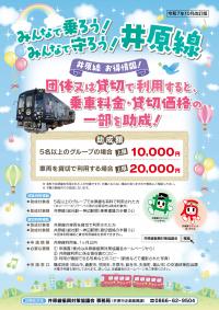 井原線振興対策協議会では、井原線を5人以上の団体又は貸切で利用した事業へ井原線利用料金の助成を行っています。